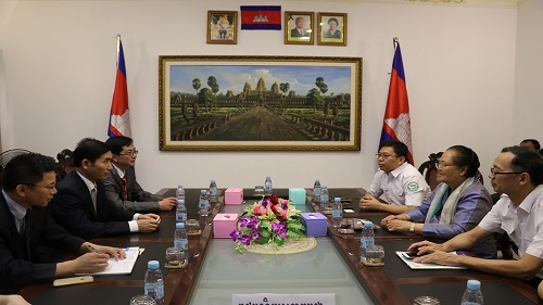 6月21日上午,由九江学院党委副书记魏立平率领的九江学院教育代表团访问了柬埔寨王家研究院孔子学院,访问团成员有九江学院旅游学院院长李松志、文学与传媒学院副院长朱全国和国际合作交流处施密特。柬埔寨王家研究院院长克洛媞达(Khlot Thyda)院士、柬埔寨王家研究院孔子学院院长谢莫尼勒(H.E.CHEA MUNYRITH),中方院长夏修龙热情接待了魏立平副书记一行。