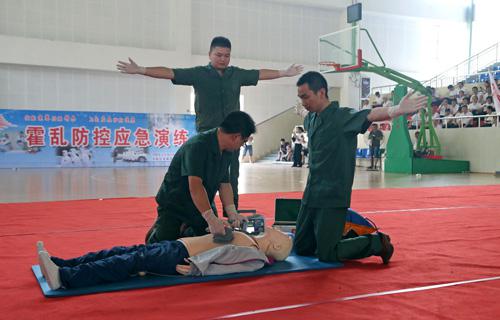 为积极响应国家卫计委和省卫计委提出的卫生应急竞赛活动要求,提升广大卫生应急工作人员的业务能力和专业水平,7月28日,由市卫计委组织的九江市卫生应急技能竞赛表演及颁奖活动,在九江职大新校区体育馆举行。省卫计委副主任万筱明、九江市政协副主席严平及市总工会、市卫计委、市疾控中心、市急救中心等领导出席了活动。临床医学院/附属医院纪委刘英明书记、急诊科但传军主任带队参加,参赛队喜获团体一等奖佳绩。