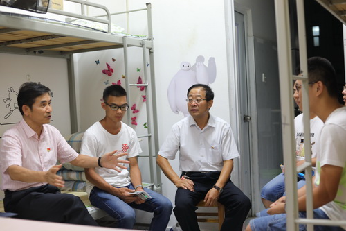 在“双体验日”短短的一天里,魏立平副书记在有关部门和政法学院负责人的陪同下参加了学生早操活动;与大一新生们共同观看了学生鼓乐队的表演;在图书馆走访时详细了解开放时间、人员设置到设施的质量和利用率,慰问了正在学生宿舍值班室晚间当值的负责人和老师。魏副书记还与马克思主义学院、政法学院的负责人就思政课改革、完善思政课讲课评价体系、十九大宣讲团筹备和组成等进行了深入探讨交流,明确指出我校的思想政治理论课应该守住底线、突出特色,十九大宣讲团的筹备组建是下半年学校思政工作的头等大事。