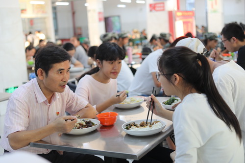“叫什么名字?老家在哪里?在班上担任职务了吗?来九江上学还习惯吗?”下课铃响,魏副书记与同学们一起在食堂排队打饭,在就餐过程中与同学们拉起了家常,从学习生活到同学关系,平易近人的话语温暖了在座的同学。