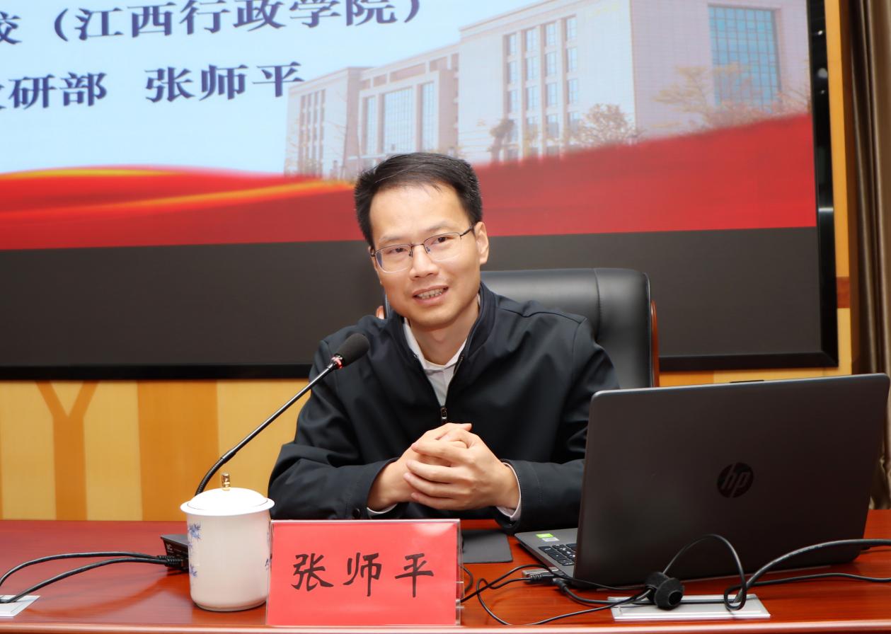会议邀请省委党校(江西行政学院)党史党建教研部张师平博士作《习近平谈治国理政》第五卷专题辅导讲座。讲座视野开阔、内涵丰富、剖析透彻,从《习近平谈治国理政》第五卷出版的时代背景与重大意义、总体框架与鲜明特色、核心要义与实践要求三个维度展开深入解读,系统梳理了著作中贯穿的马克思主义立场观点方法。
