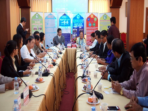 10月25日下午,柬埔寨王家研究院孔子学院特本克蒙省韩桑林大学汉语中心揭牌仪式在柬埔寨王家研究院孔子学院举行。柬埔寨王家研究院院长、孔子学院理事长克洛媞达院士(Academician KHLOT Thyda)、江西人民出版社社长张德意、韩桑林大学校长品万那罗(H.E. PIN Vannaro)、孔子学院院长谢莫尼勒阁下(H.E.CHEA Munyrith)、中方院长夏修龙教授等出席揭牌仪式。揭牌仪式由谢莫尼勒院长主持。