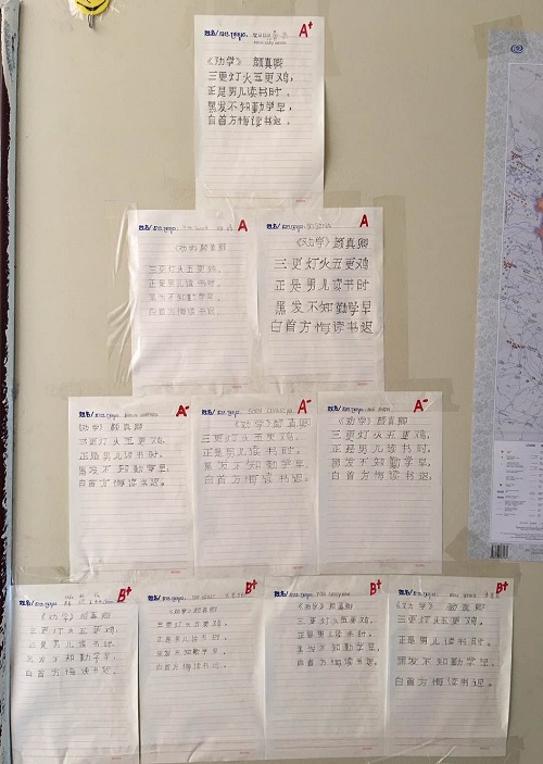 比赛采用10分制,各学员限时30分钟进行硬笔书法书写比赛,经过四位评委对参赛作品的评选,共选出一等奖1名;二等奖2名;三等奖3名;优秀奖4名。学员NAK SREY NEATH获得了一等奖,摘得桂冠。相关获奖作品张贴于文化墙供进行展示。