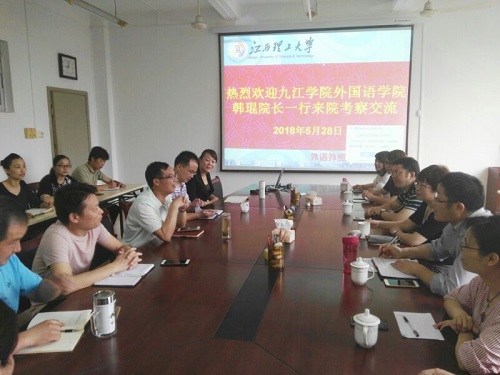 在考察期间,江西理工大学外语外贸学院院长廖根福和赣南师范大学外国语学院院长张静热情接待了韩琨院长一行,介绍了他们的评估工作总体方案、办学定位、人才培养中心地位、师资队伍建设、硕士点设置、课程资源建设、图书资源建设、校友资源发掘、第二课堂、营造评估氛围等基本情况,并着重介绍了凝练特色的过程及本科教学审核评估迎接专家进校方面的经验。