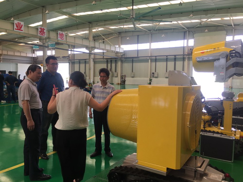 9月7日上午,机材学院院长张德勤、党委书记陈胜才、副院长李养良、省重点实验室高阳博士一行前往中信重工开诚(共青城)机器人产业基地考察。共青城市副市长张志坚,中信重工开诚(共青城)机器人产业基地负责人夏振伟热情接待了机材学院一行人员。