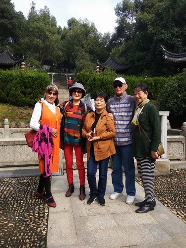 阳光明媚,微风习习,鲜花怒放,彩蝶纷飞,栈桥上、山门前,一群老先生老太太或蹒跚而行,或健步如飞,或流连濂溪溪畔,或暂歇爱莲亭边,自然美景的陶醉,老友重逢的喜悦,他们的脸上洋溢着欢乐的笑容,阵阵开怀的笑声在林间回荡。这是10月17日民盟九江市委会组织开展的2018退休老盟员重阳节活动的现场——九江市濂溪公园。民盟九江学院委员会组织老龄支部的13位退休老盟员参加了本次重阳节游园活动,和其他支部的退休同志们一起欢度“敬老节”。