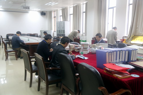 在香远楼219会议室,检查组经讨论统一了评分标准,确定了“各评委无计名评分,最高分不超过95分,最低分不超过75分,统分时去掉一个最高分和一个最低分后取平均值”的评分规则。接着各受检学院负责人从学院文化展示、学院环境美化、学院宣传则(片)、其他特色亮点等对本科教学工作审核评估文化建设工作及整改情况作了PPT和宣传片汇报。