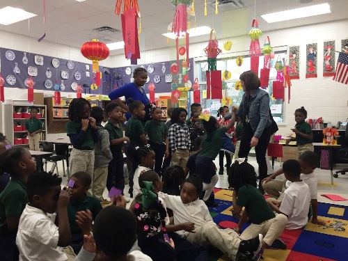 萨凡纳孔子学院下属的教学点——萨凡纳市的哈文(Haven)小学,师生酣畅淋漓地体验了一把中国的春节文化。江西省九江市双峰小学的齐彩平老师通过开展丰富多彩的“春节”主题系列教学活动,在“有趣”又“有效”地传授汉语知识的同时,向小学师生们多方位地展示了中国的春节文化。