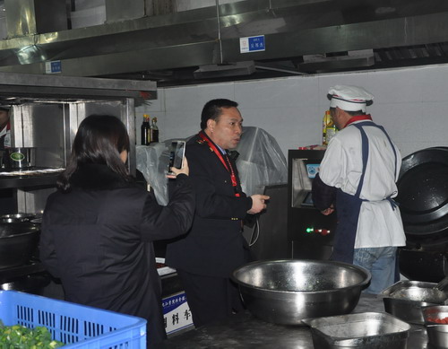活动现场,检测人员从九江学院学生食堂取样部分品种的蔬菜作为检测标的。据检测人员介绍,食品安全快速检测设备可对食品农药残留、二氧化硫、亚硝酸盐、吊白块、过氧化值等20多项食品指标进行检测,且准确度高,操作简便。食品安全快速检测设备的投用,告别了以往食品安全执法检查用手摸、凭肉眼、靠经验的做法,提高了食品安全监管的靶向性和针对性。食品是否安全,通过实验室检测周期太长,不能让消费者及时掌握不合格食品信息。而食品安全快速检测仪正好弥补了实验室检测周期长的不足。经过抽样检测,九江学院参检样品全部合格。市场监督局工作人员和众多媒体还一起走进九院食堂后厨,检查食堂各项记录,参观了我校食堂的仓储中心和蔬菜配送中心,对我校饮食服务中心心系师生饮食安全的一系列做法表示赞赏并提出了很多好的建议。
