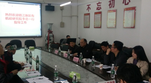 在前期双方就有机硅相关产品研发达成初步合作意向的基础上,根据研究院提出的10余项研发性与生产性科研课题,研究中心教师结合各自的专业特长与研究基础,针对部分课题进行了大量的文献调研,就课题的工艺路线、可行性等方面做了较为充分的分析论证。5位博士先后分别采用PPT等方式就负责课题进行介绍,随后双方进行了深入的交流探讨,最终确定了将开展联合攻关的课题。