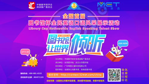 为庆祝中国图书馆学会成立 40 周年,迎接 2019 年“4.23世界读书日”,倡导全民阅读, 中国图书馆学会阅读推广委员会联合全国各公共图书馆、各高校图书馆共同开展了全国首届“图书馆杯全民英语口语风采展示活动”。
