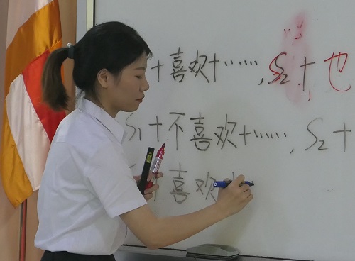2019年11月10日下午,为进一步提升孔院课堂教学质量,提高汉语教师志愿者的教学水平,促进教师们相互交流和学习,柬埔寨皇家科学院孔子学院在孔子学院本部三楼会议室隆重举办了一年一度的孔子学院汉语教师志愿者教学竞赛。柬埔寨皇家科学院孔子学院中方院长柴克清先生和柬方院长苏碧娜(VUTH Sopheakna)女士莅临本次教学竞赛现场,来自孔子学院本部及下属各教学点的60名汉语老师参加了此次活动。