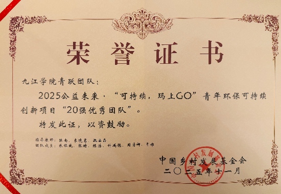 这份亮眼成绩的背后,是师生同心协力的不懈付出。备赛及赛事全过程,张南、魏晶晶、李晓惠三位指导老师从项目方案设计、内容打磨到现场展示环节,提供全流程、专业化的指导与支持;团队成员们分工明确、紧密协作,反复推敲优化项目细节,以扎实的实践落地能力和新颖的创新思路,在全国舞台上彰显了九江学院青年学子关注社会、践行环保的责任与担当。