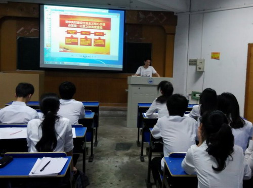 5月15日晚,药生学院在笃学楼204教室举行了以“社会主义核心价值观”为主题的理论授课活动,特邀思政部柯元老师为大学生骨干班全体成员作了专题讲座。