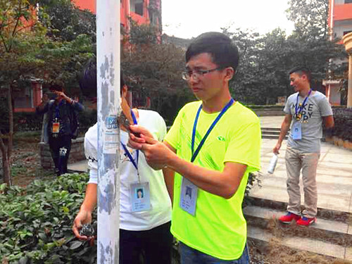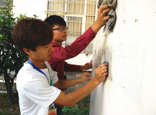 中午12点20分,同学们吃完饭就来到思贤楼学生会办公室集中。接受完工作任务后,他们就分组、分路线对通往学校前门、后门以及家属区沿途的小广告、招聘信息等进行清除。同学们不怕脏、不怕苦、齐心协力,不到一个小时的时间,校园内的“牛皮癣”被清理一空,宣传栏也被擦拭的亮丽如新。
