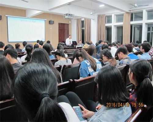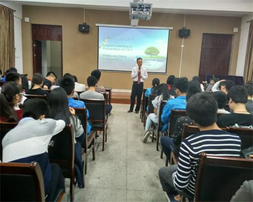 为提升同学们对英语的学习兴趣,提高英语等级考试的通过率。 4月13日、4月19日晚上七点,化环学院特邀外国语学院桑龙扬教授分别为2015级和2014级本科生作英语等级考试辅导讲座。
