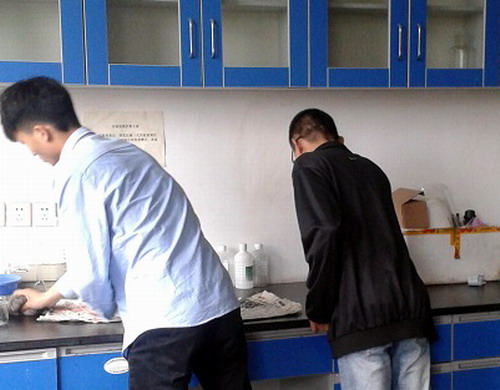 下午两点半,入党积极分子们都早早的在实验楼集合,分完组后,入党积极分子们便积极投入到清扫活动中,大家热情高涨,干劲十足,有的打扫地上的卫生、有的擦除实验桌上的污点,有的清洗实验仪器,整个劳动过程井然有序。积极分子们充分发扬了不怕脏、不怕累的精神,展现了入党积极分子应有的积极行动、相互配合的团队协作精神和争当先锋模范的素质。看着焕然一新的实验楼,积极分子们纷纷表示:将继续用自己的行动诠释“为人民服务”的精神,努力提高自己的政治思想觉悟,争取早日成为一名合格的共产党员。