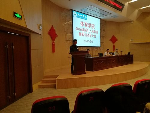 随着大屏幕上一幅幅展现体育学院生机勃勃发展的照片的滚动,王院长对体育学院近几年在学校领导支持下,在学院领导、师生们的共同努力下,所创造的辉煌成绩进行了介绍和点评。并向新同学们介绍了体育学院的发展规划、学科建设、竞技体育、特色实践活动、创业与就业等方面工作所取得的成效和亮点。