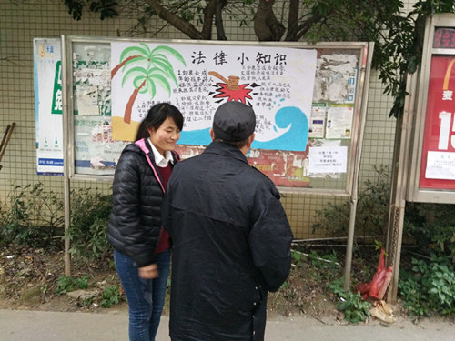 在于龙鑫小区物业管理人员的协商下,同学们通过画海报以及散发宣传单的形式为小区居民以及周边幼儿园小朋友宣传法律知识,让他们了解一些与生活息息相关的法律小知识。在活动现场,同学们积极地为周围的居民讲解同时还举出实例加以佐证。活动持续到傍晚,同学们仍不知疲惫。
