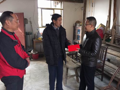 为认真贯彻落实“精准扶贫”工作,1月14日上午旅游与国土资源学院党委书记黄伟、副院长赵追、各科室负责人一行9人到武宁县官莲乡东山村走访慰问了精准扶贫户。