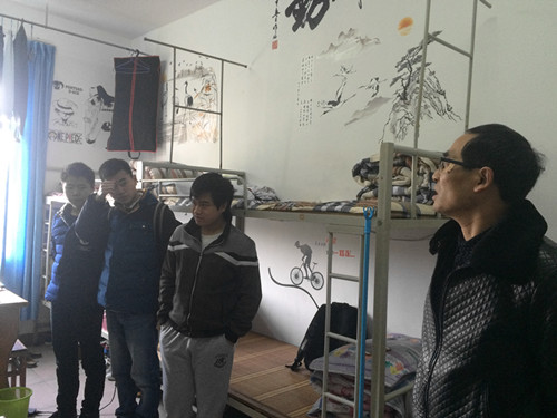 上午,学院对各年级各个寝室展开了深入细致的检查,并对具体情况做了记录。检查中,孙书记对学生寝室的内部细节有了深刻确切的了解,同时,还耐心和蔼得跟学生们讲起了营造干净整洁的寝室卫生环境和养成良好的卫生习惯对大学生发展的重要影响。同学们认真听后表示,将把寝室当成温馨的家,保持它的洁净靓丽。