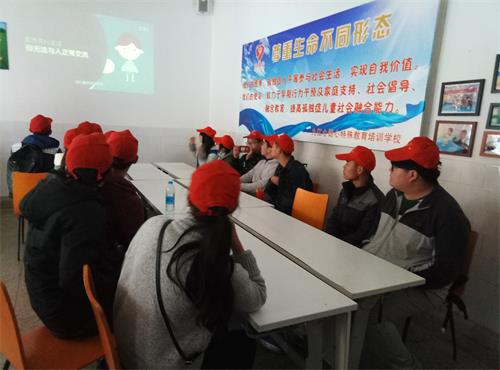 中午12点,大家乘坐公交车来到了九江市心语心特殊教育培训学校。到达培训学校后,学校负责人为志愿者们进行了一个简短的培训,提出了活动的注意事项,同学们认真学习了有关帮扶的知识和与患有自闭症的孩子们沟通交流的方式。随后大家分别陪伴不同的孩子上课,虽然各自与孩子们有着沟通上的障碍,在学校老师的辅助下,志愿者们和孩子们很快就熟络起来;他们与儿童对话、做游戏等体验自闭症儿童的生活感受他们的心灵世界。经过一个下午的相处,大家都了解了自闭症儿童的一些日常生活以及特殊学校老师所付出的艰辛,并深刻理解了“尊重生命不同形态”的内涵。