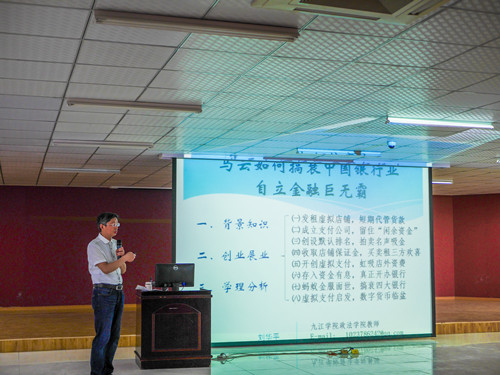 5月23日晚,政法学院历史学社在综合楼6楼模拟法庭举办了以"马云如何搞衰中国银行业,自立金融巨无霸"为题的座谈会,本次座谈会由历史讲师刘华平老师担任主讲人,历史学社全体干部和社员参与了本次座谈会。