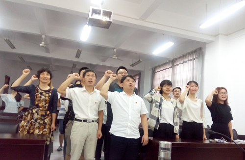 最后,全体成员起立和新加入党组织的党员同志一起开展入党宣誓仪式。