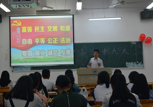 为认真贯彻落实《关于加强和改进新形势下学校思想政治工作的实施办法》,切实将大学生的思想政治教育落到实处,10月11日晚七点半,信息学院党委书记袁宜如在文友楼511教室参加完主题团日活动后,为A1731班同学们上了一堂主题为“自强不息,放飞青春”的思政课。