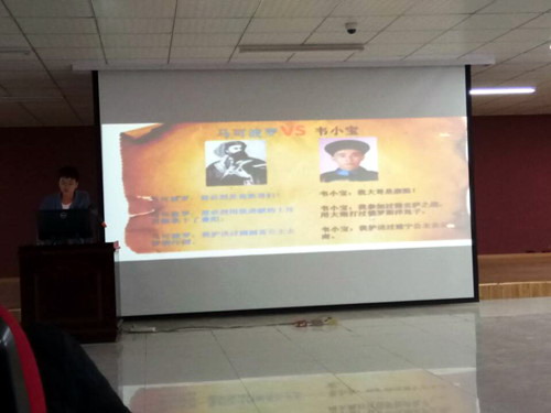 在本次讲堂上,谢应权学长为我们讲述了历史上马可波罗来到中国的过程以及专家对马可波罗来华的质疑。马可波罗口述在华经历作家鲁思梯谦将其写成《马可波罗游记》,专家学长据书中细节提出质疑。与此同时,他还给我们播放了视频,视频主要讲述的内容是当代史学界对于“马可波罗是否真正来到中国”的一些争论。通过谢应权学长生动的讲述,我们了解到《马可波罗游记》极大地扩大了中国在欧洲的影响,马可波罗来中国的原因以及过程。最后我们在经典传奇影片和热烈的掌声中这次历史讲堂落下了帷幕。