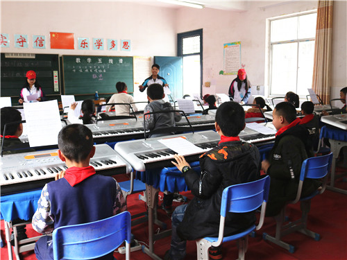 抵达刘家塘小学后,志愿者们分为两组为孩子们授课,一组教授手工,一组教授音乐。对于志愿者们的到来,孩子们期待又兴奋。手工课的课程内容为DIY创意书签,志愿者们循循善诱,鼓励孩子们开拓思维、大胆创新,帮助孩子们做出了属于每个人自己独一无二的书签。在音乐课上,《送别》的悠扬曲调声声入耳,志愿者们温柔耐心,从开始识谱到一曲作罢,一句一句教着他们吟唱那优美诗篇样的歌曲与情怀。澄澈的眼神,稚嫩的童音,肃肃花絮晚,菲菲红素轻。在这样如诗的初春里,课程也在孩子们清脆的欢笑中结束了。