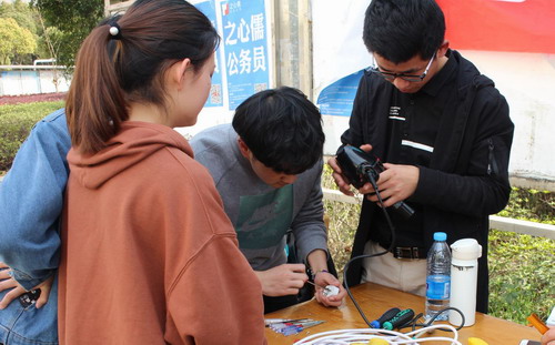 为弘扬雷锋精神,培育和践行社会主义核心价值观,3月28日下午,电子工程学院学生党支部、社会实践部、电子协会联合在三食堂广场开展义务维修活动。