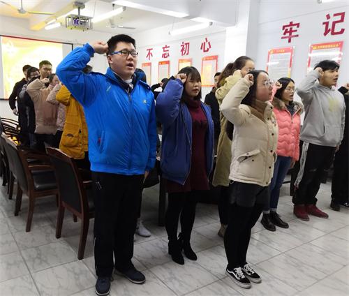 12月19日下午,化环学院学生党支部在向学楼党员活动室举行新党员入党宣誓仪式。学生党支部书记王颖及全体学生党员参加仪式,仪式由王颖书记主持。