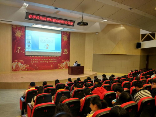 二是邀请校医院和中国银行九江分行信用卡中心来校区开展安全知识讲座。3月20日,八里湖校区在综合楼四楼报告厅举办了主题为“春季传染病和结核病防治知识宣传”和“金融安全及防诈骗”的安全知识讲座。八里湖校区管理办公室邓燕主任到场并讲话,希望同学们认真学习相关安全知识,积极锻炼身体。