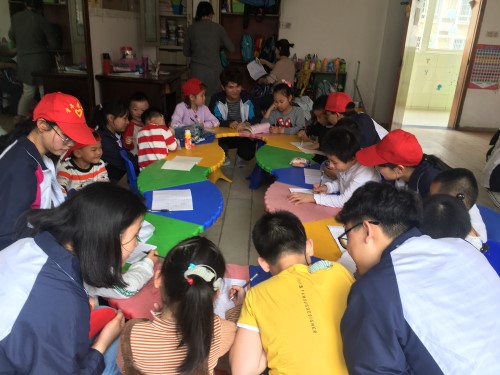 天气虽然很闷热,但志愿者们如沐春风,早早就在集合点排好队等待。经过四十多分钟的车程,终于抵达了康复中心。孩子们见到志愿者们,露出了天真无邪笑容,志愿者们也亲切地与孩子们打招呼,大家都有些迫不及待。同负责的老师沟通好后,志愿者们和孩子一起唱歌,用歌声表达内心的喜悦;他们一起画画,用铅笔勾勒心中的世界;他们一起玩耍,用笑声传递彼此的友好。时光匆匆而过,离别总是会来临,彼此都很不舍。活动尾声,青年志愿者与小朋友们合影留念,此次志愿者活动在一片欢声笑语中顺利结束。
