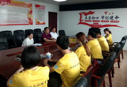 7月13日上午,旅游与地理学院社会实践服务队在学院党委副书记吴彭年和辅导员沈衍锋老师带领下,来到柴桑区新塘乡开展2020年暑期“三下乡”社会实践活动。